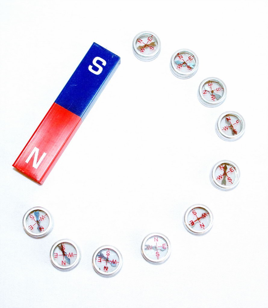 Набор компасов используется при построении силовых линий магнитного поля постоянного магнита.