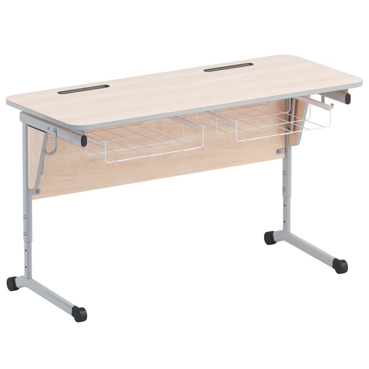 Стол ученический двухместный с наклоном столешницы (0-24°) и корзиной